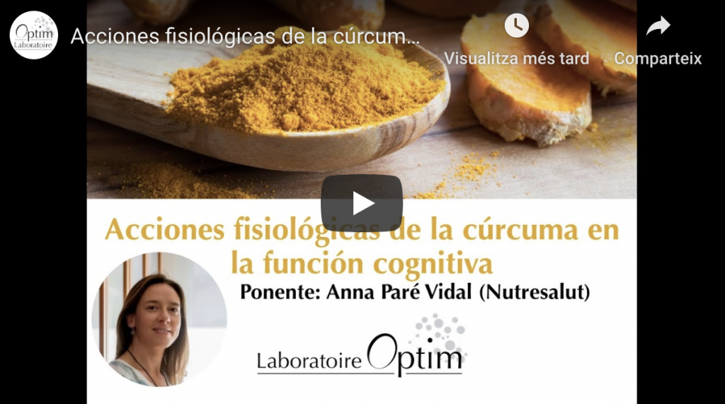 Et convido a veure el següent vídeo on explico les accions fisiològiques de la cúrcuma Longvida® en la funció cognitiva, protecció del deteriorament cognitiu i de malalties neurodegeneratives com l’Alzheimer.